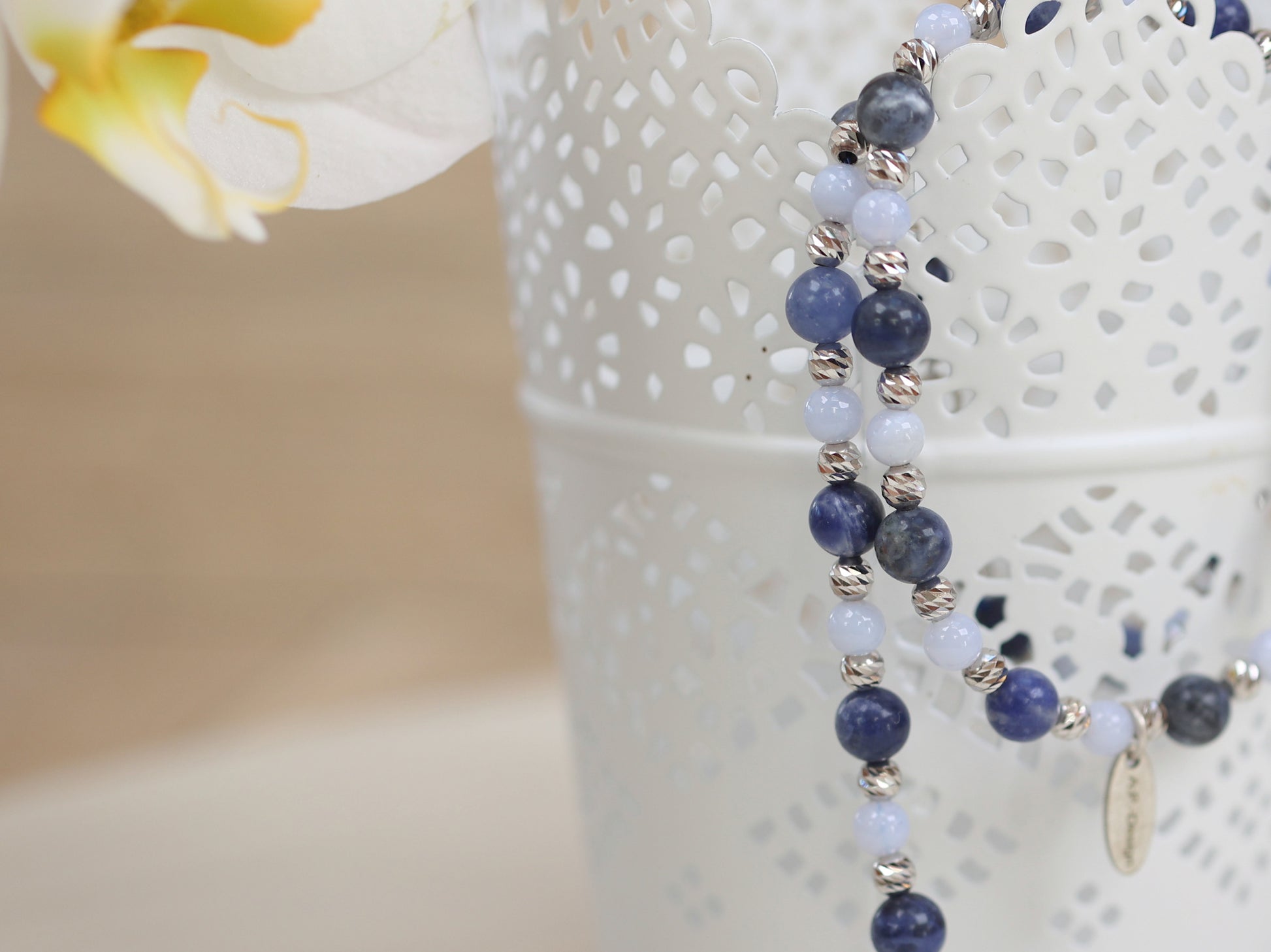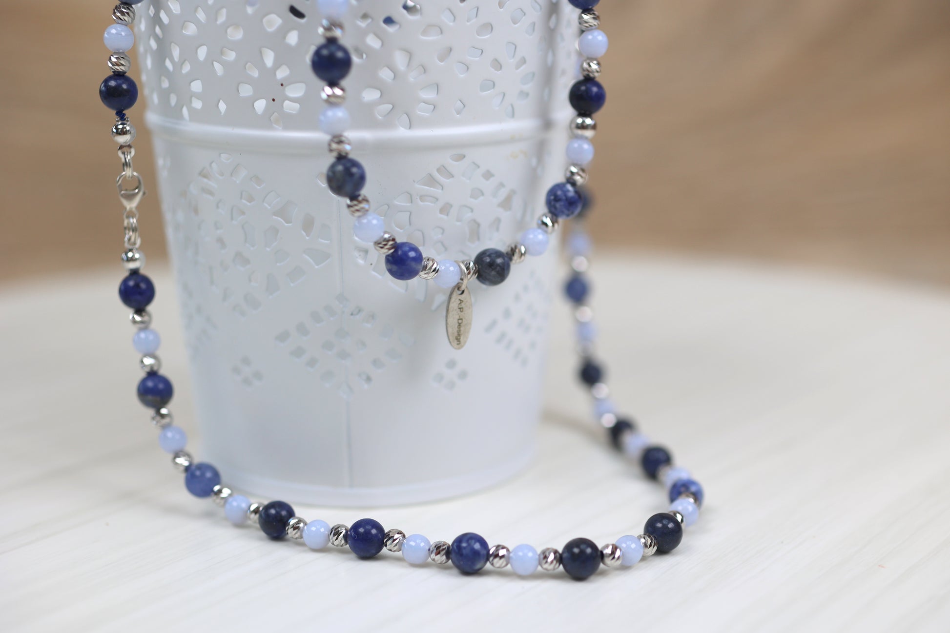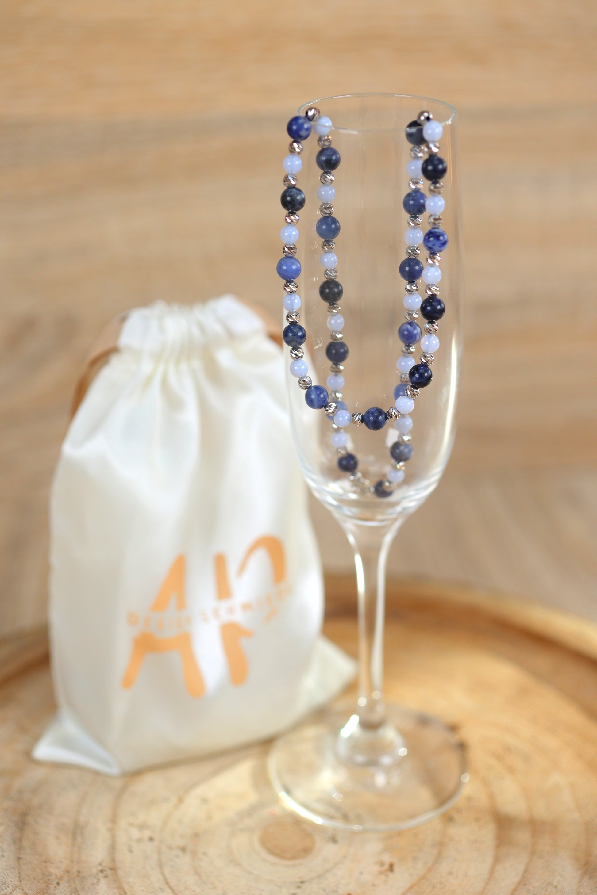 Diese wunderschöne Sternzeichenkette für den Schützen verbindet die klare Energie des Chalcedons mit der tiefen Weisheit des Sodaliths – zwei Edelsteine, die den freiheitsliebenden Geist des Schützen perfekt widerspiegeln.