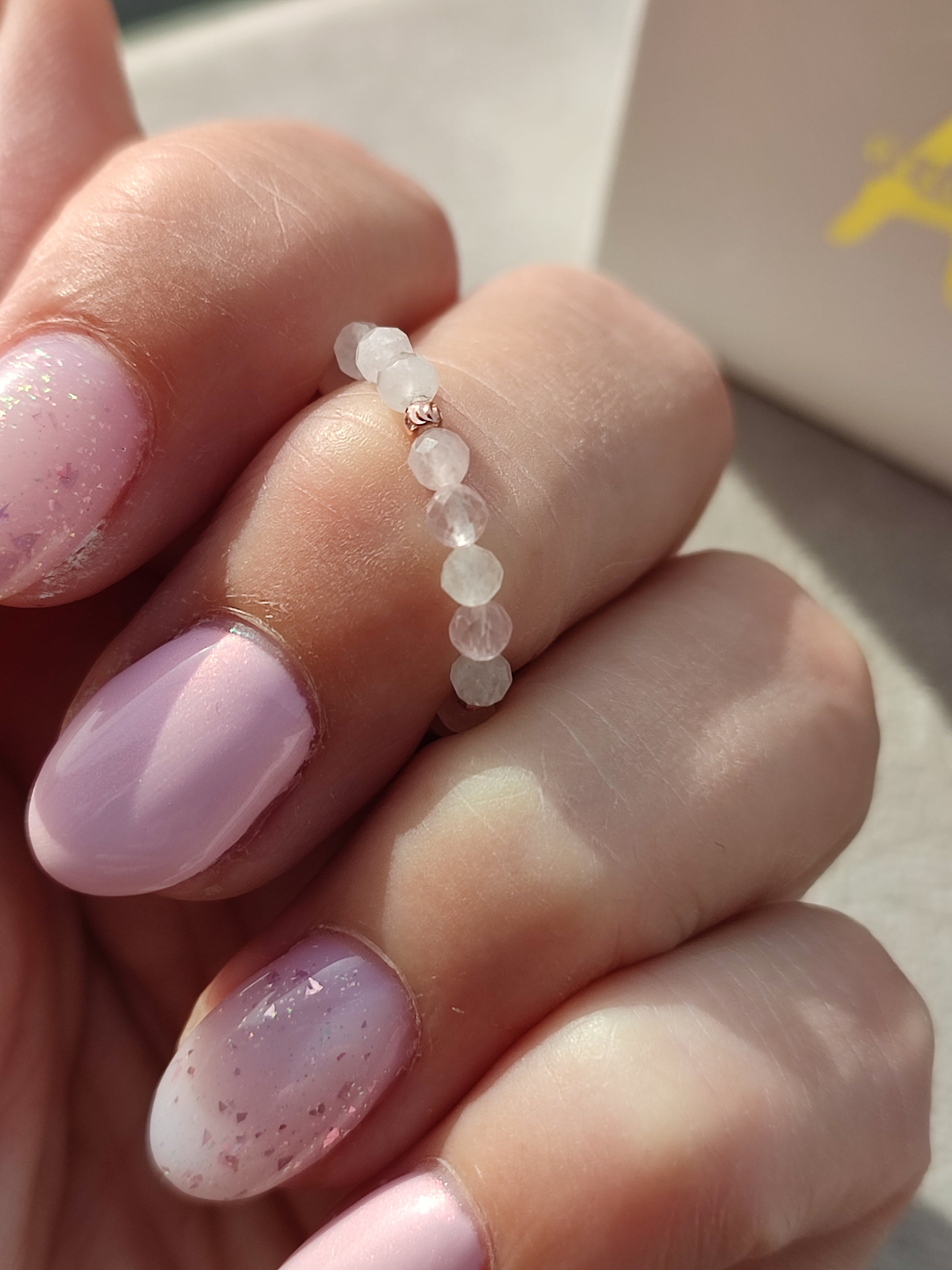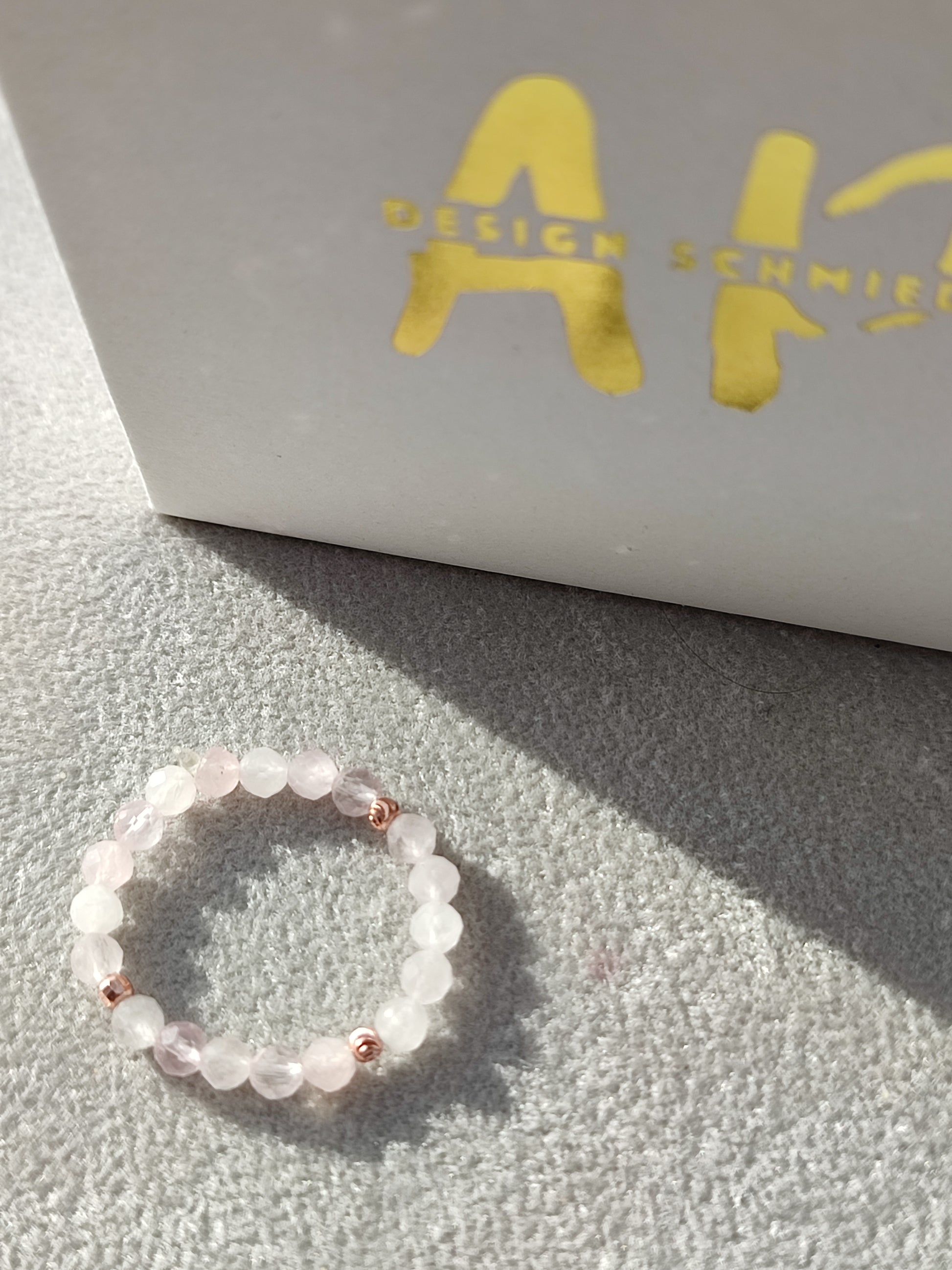 Zart schimmernder Rosenquarz trifft auf elegante roségoldene Akzente – ein Ring, der Leichtigkeit und Luxus in perfekter Harmonie vereint. Die feinen Perlen schmiegen sich dank des elastischen Bandes sanft an und verleihen jedem Look eine verspielte, feminine Note.