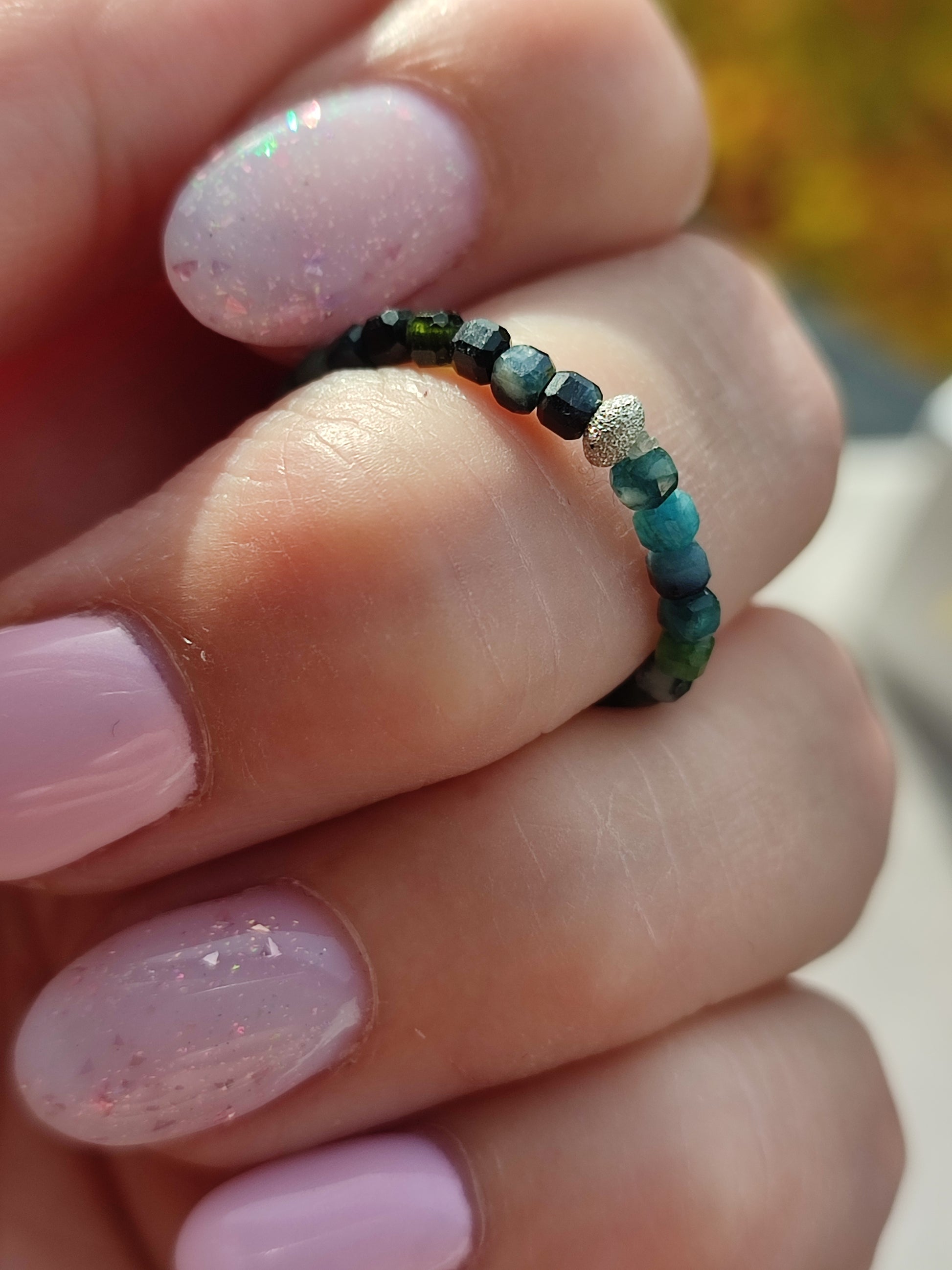 Jedes Stück wird mit Liebe von Hand gefertigt. Das elastische Band passt sich sanft dem Finger an und sorgt für höchsten Tragekomfort – stilvoll, leicht und besonders.