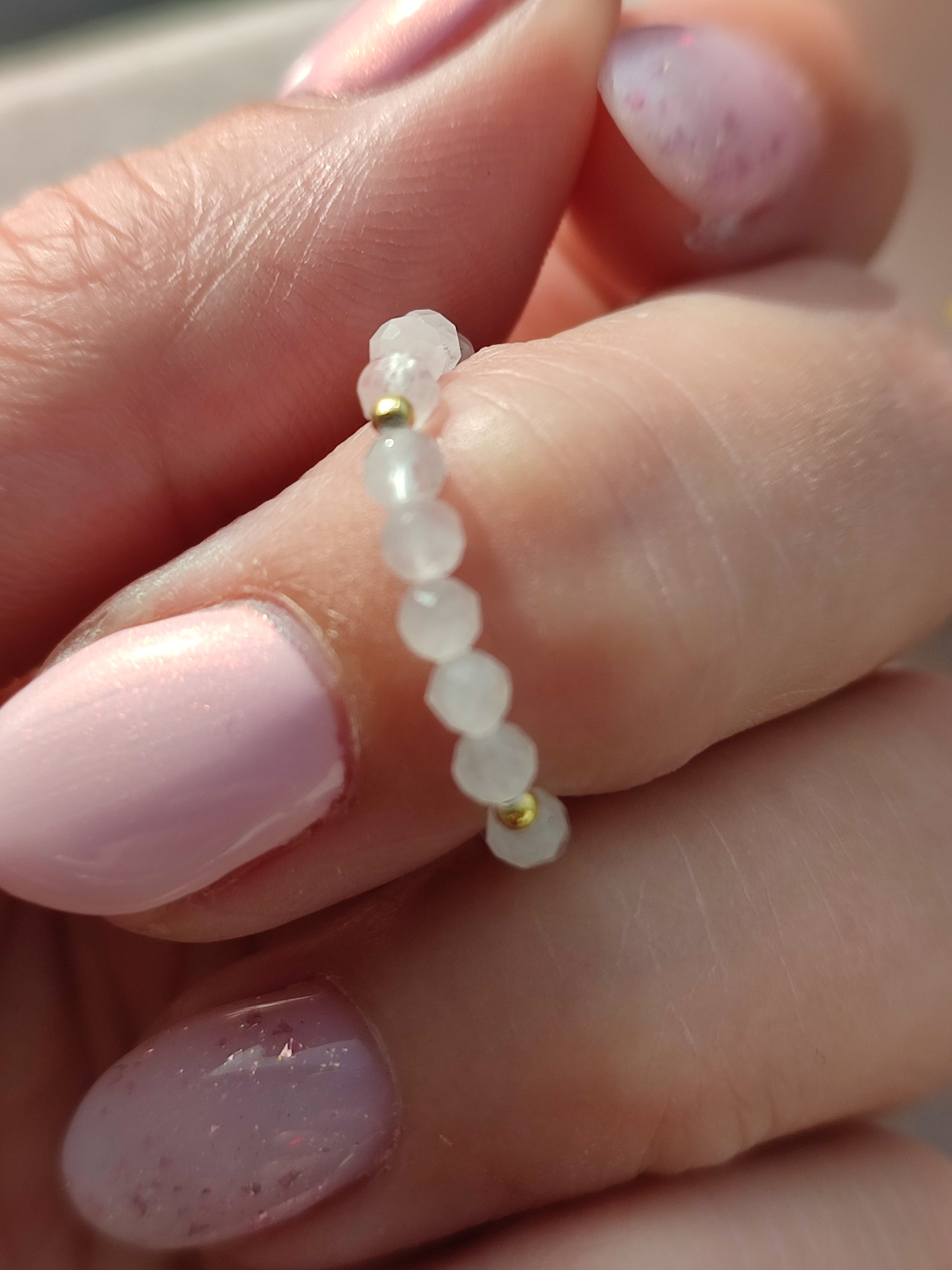 Das zarte Rosa des Steins symbolisiert Liebe, Harmonie und innere Ruhe, während die edlen Goldakzente einen Hauch von Luxus verleihen. Dank des elastischen Bandes schmiegt sich der Ring mühelos an – sanft, bequem und stilvoll.